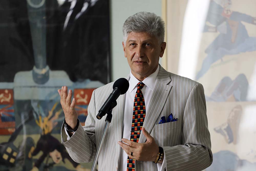 Председатель профкома НИУ «БелГУ», член штаба исполкома Народного фронта в Белгородской области Валерий Тимофеев поздравил собравшихся с открытием уникальной экспозиции, отметив её актуальность, своевременность и патриотический посыл. Валерий Кузьмич поблагодарил куратора выставки и владельца частной коллекции, которые предоставили белгородцам возможность прикоснуться к творчеству замечательных художников Кукрыниксов.