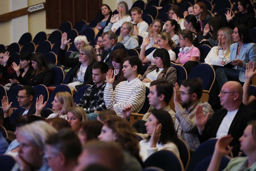 По словам ректора, лейтмотивом события является работа профессиональных школ, деятельность которых полномасштабно начинается в этом учебном году. Профшколы – это новая норма мышления, коммуникации, деятельности. Фундаментом для профессиональных школ стали ценностные принципы университета – человекоцентричность, эмерджентность и полный цикл.