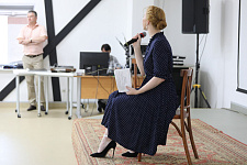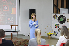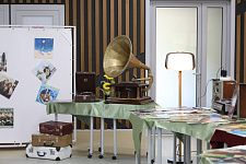 Евгения Анатольевна рассказала о своей поездке в музей-заповедник «Прохоровское поле», где работает экспозиция, посвящённая легендарным военачальникам. Среди экспонатов – музыкальные проигрыватели и грампластинки тех лет.
