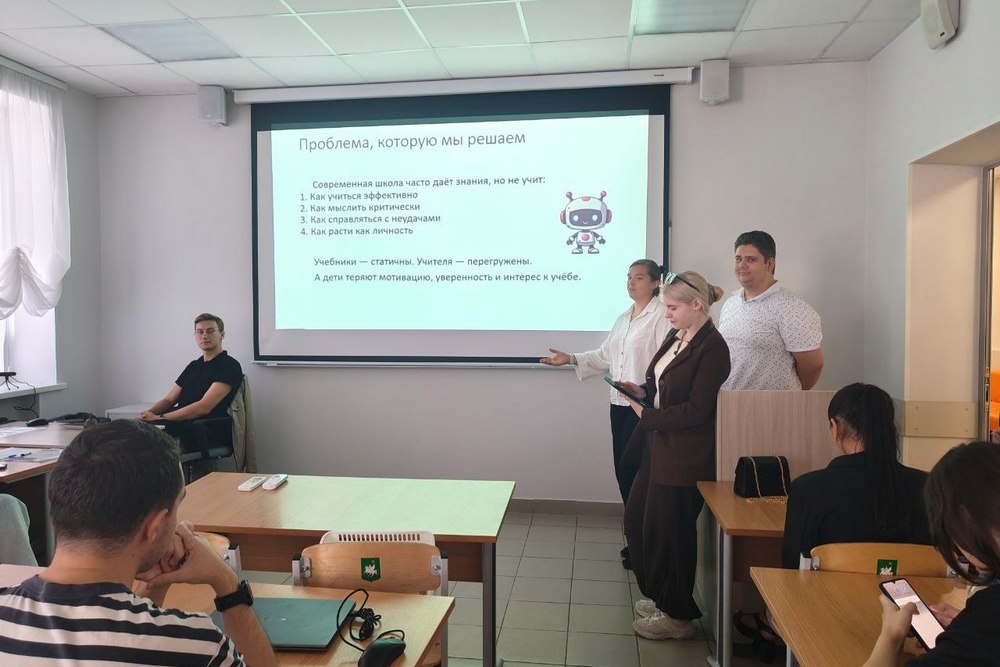 Центральной темой встречи стало использование ИИ-инструментов для создания визуальных данных для сопровождения образовательных продуктов. Организаторами и модераторами образовательного события выступили руководитель Педагогической школы Ольга Дехнич, и.о. директора педагогического института Алексей Ковтуненко, профессор кафедры педагогики Галина Макотрова и ассистент кафедры информатики, естественнонаучных дисциплин и методик преподавания Марина Пронина. Они погрузили обучающихся в мир нейросетей и показали, как гИИ помогает в визуализации сложных концепций и подготовке презентаций. Особое внимание уделили доступным и дружелюбным к новичкам платформам. Но самое главное – студенты не слушали лекции, а сразу приступили к практике. Участники разделились на команды исходя из ролевой дифференциации: исследователь, предприниматель, управленец.