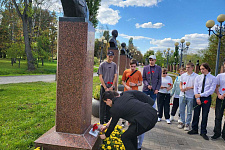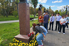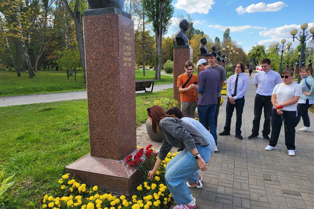 В Парке Победы состоялось торжественное возложение цветов к бюсту Героя России В.В. Бурцева, выпускника Белгородского педагогического институт.