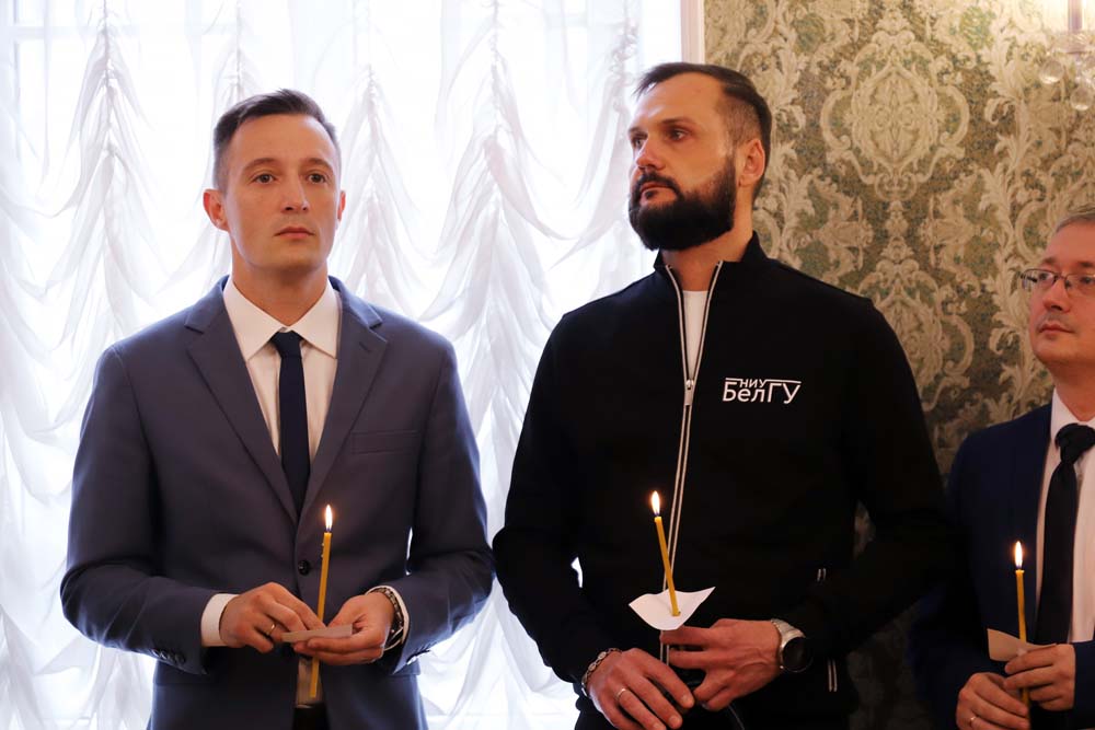 Перед церемонией награждения в храме-часовне Священномученицы Евгении Римской состоялся праздничный молебен, в котором приняли участие ректор вуза Евгения Карловская, представители ректората НИУ «БелГУ», руководители институтов и факультетов, студенты, сотрудники и преподаватели. С торжественным днём всех присутствующих поздравил настоятель храма протоиерей отец Роман (Пивнев).