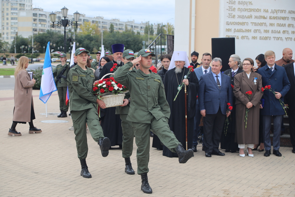 Митрополит Иоанн освятил памятник и призвал жителей города с уважением относиться к истории своей страны.