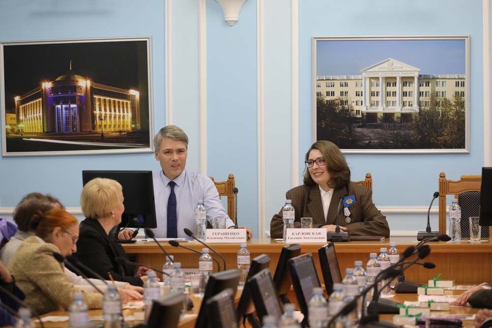 – Кто, как не вы строили этот университет, воспитывали выпускников, которые наверняка уже имеют огромный вес в нашей экономике и тех профессиональных сферах, к которым вы их готовили. Низкий поклон за вашу работу! Спасибо за то, что сегодня откликнулись и пришли на наше заседание, – обратилась к присутствующим Евгения Анатольевна.