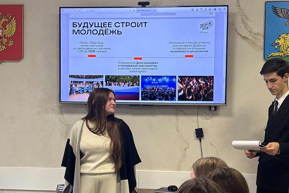 Мероприятие стало ярким примером того, как важно сохранять память о прошлом, понимать исторические процессы и видеть перспективы развития будущего. Для студентов этот день стал не только знакомством с новой страницей истории страны, но и напоминанием о ценности единства и преемственности поколений. В конце встречи каждый из присутствующих перешёл по QR-коду и написал короткое письмо-поздравление для студентов из Донецкой и Луганской Народных Республик, Запорожской и Херсонской областей.