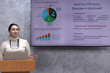 Руководитель Естественнонаучной профессиональной школы Ульяна Круть выступила с образовательной лекцией о глобальных трендах в агробизнесе и российских разработках биотехнологов.