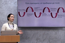 Ульяна Круть рассказала о полном цикле создания биопрепаратов, о том, как исследователи находят полезные штаммы микроорганизмов и превращают их в эффективный продукт. Учёный отметила, что сегодня в биологическом учебно-научном комплексе «Инновационные решения» студенты, магистранты, аспиранты под руководством ведущих учёных института исследуют бактерии, выявляя среди них стимуляторы роста, определяют грибы-антагонисты и полезные нематоды, которые могут защитить растение и повысить плодородие почв.