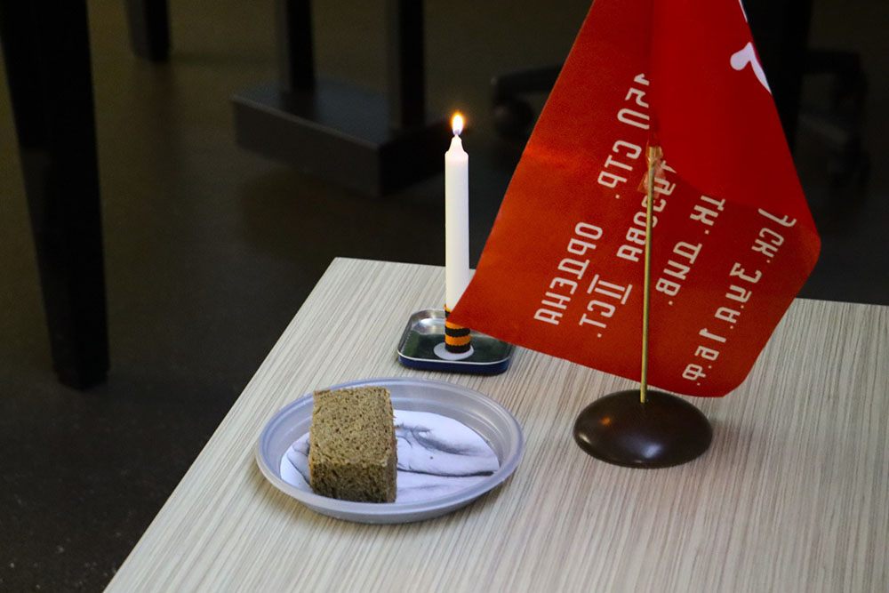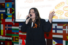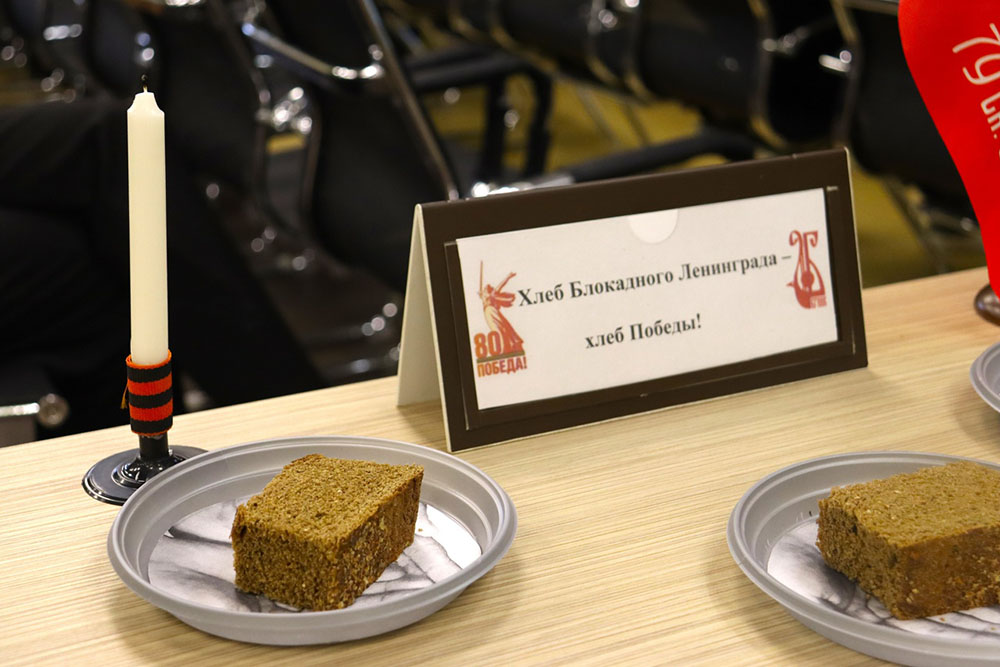 Дань памяти отдали хлебу военного времени. Студенты института фармации химии и биологии НИУ «БелГУ» рассказали о хлебе блокадного Ленинграда, а студентка БГИИиК исполнила песню «Блокада».