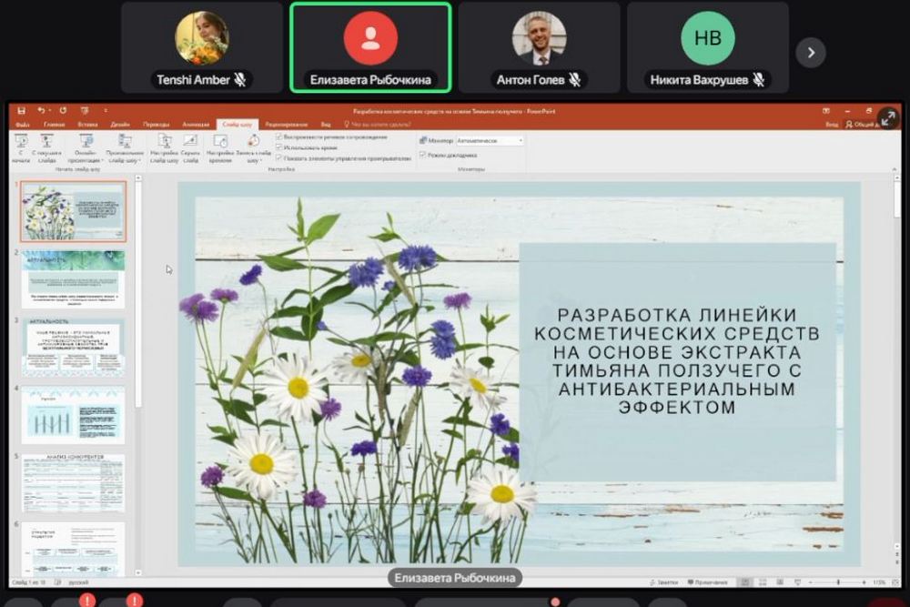 Участники акселерационной программы HealthPRO+ – преимущественно студенты института фармации, химии и биологии – сосредоточились не только на здоровье человека, но и на пищевой и косметической продукции. Так, Елизавета Рыбочкина представила проект по разработке линейки косметических средств на основе экстракта тимьяна ползучего с антибактериальным эффектом. Основной особенностью продукта девушка назвала высокую концентрацию активного вещества и экологичность его получения.