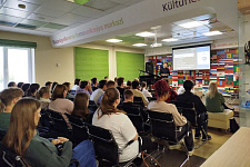 Перед студентами выступили заместитель директора Центра Наталья Жукова и аналитик Вадим Баранов. Эксперты рассказали о том, какие механизмы применяются для вычисления запрещённого контента, какие субкультуры и общественные движения замечены в публикации экстремистских материалов. Вадим Евгеньевич порекомендовал студентам еще раз тщательно проверить свои «подписки», комментарии и лайки, чтобы избежать подозрений в свой адрес. Не обошли стороной и тему мошенничества. Наталья Алексеевна напомнила студентам об основных моментах, которые являются признаком того, что вас пытаются взломать, обмануть или вынудить совершить неправомерные действия.