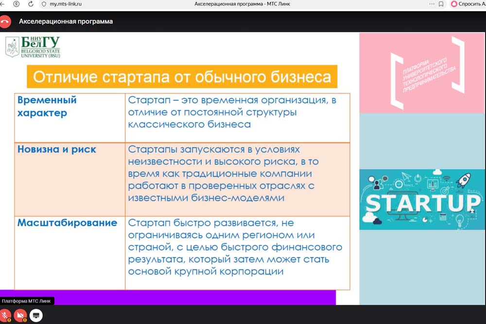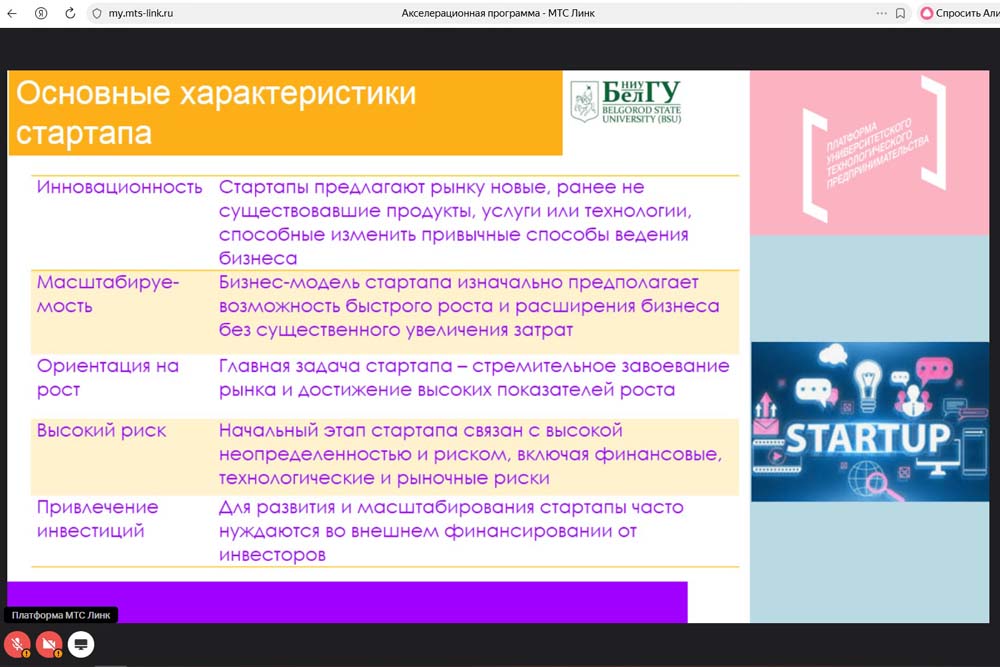В Белгородском госуниверситете продолжается реализация акселерационных программ, участники которых работают над созданием и запуском собственного стартапа.