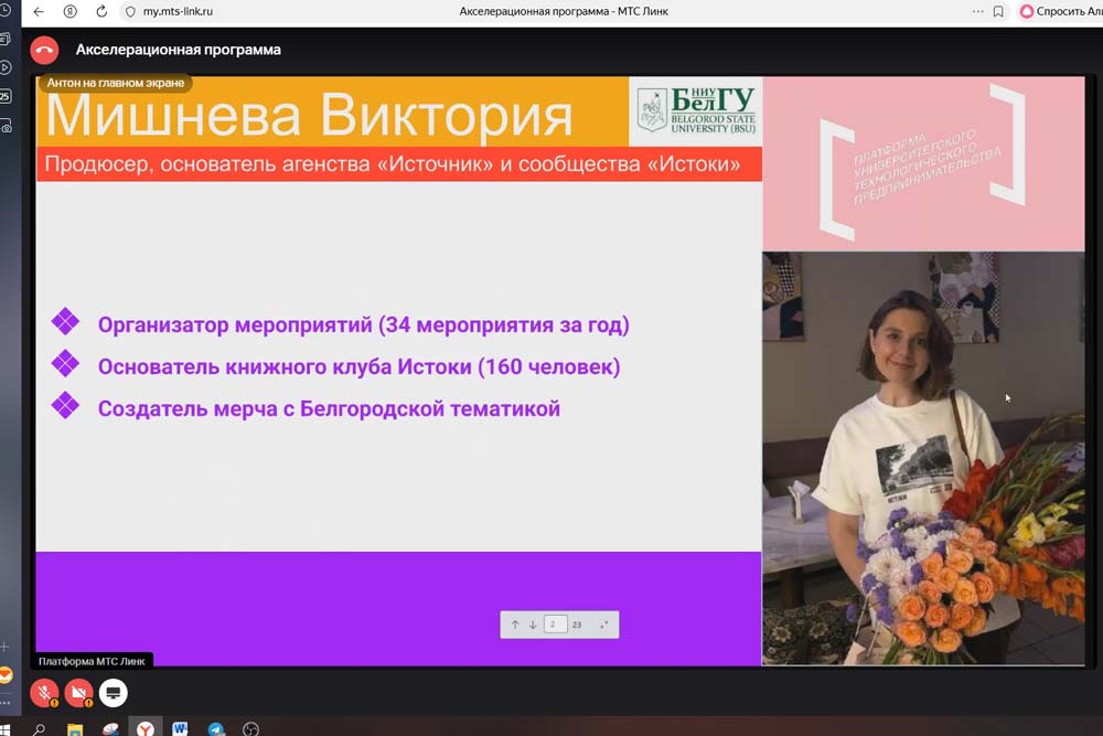 В НИУ «БелГУ» продолжается цикл лекций и мастер-классов от экспертов в рамках двух акселерационных программ «ТехноPRO+» и HealthPRO+, участники которых работают над созданием собственного стартап-проекта. Мероприятия проходят как часть образовательных событий «Университетской среды».