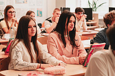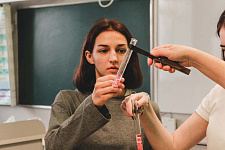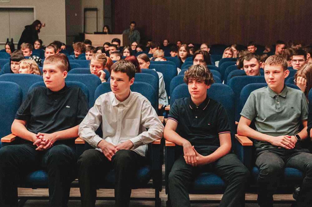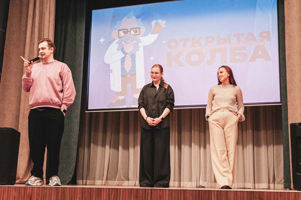 В актовом зале школы прошло научно-популярное шоу «Открытая колба». Молодые учёные Вероника Иванова и Елена Кузубова в формате научной битвы простым и доступным языком рассказывали о своих исследованиях.