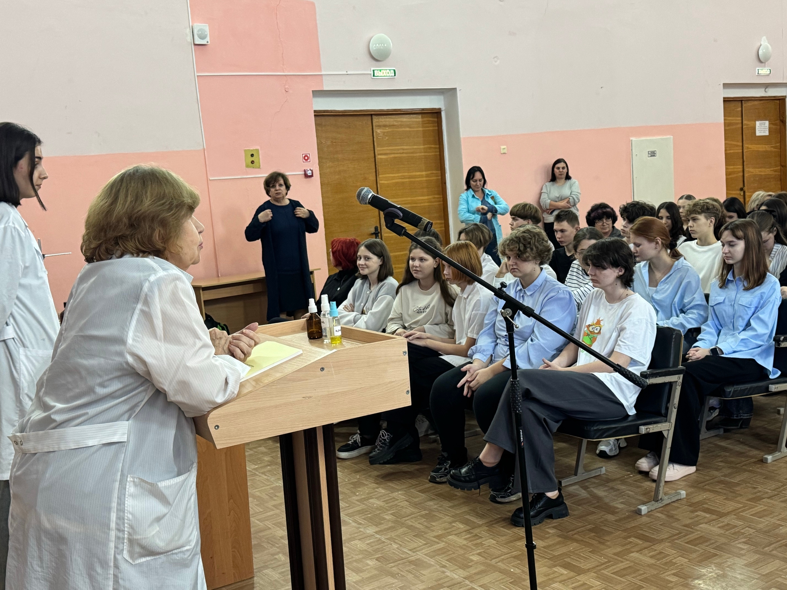 На базе школы прошла встреча студентов 4 курса института фармации, химии и биологии НИУ «БелГУ» под руководством доцентов Ирины Блиновой и Людмилы Дейнеки со школьниками. Темой встречи стало значение химии как науки в ключевых областях человеческой деятельности – пищевой промышленности, фармацевтике, охране окружающей среды и криминалистике.