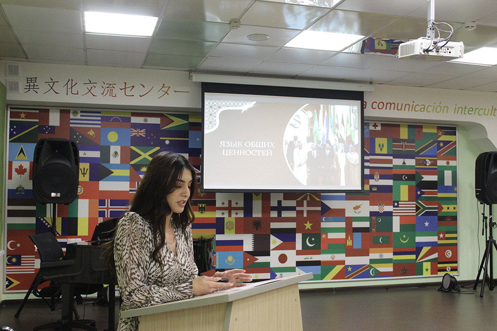 Магистрант ИМКиМО специалист Департамента молодёжной политики и воспитательной деятельности Арзу Ахмедова рассказала о языке универсальных ценностей, который формируется современными мусульманскими странами. Она отметила, что именно этот общий язык позволяет представителям разных конфессий находить точки соприкосновения и эффективно решать проблемы современного общества.