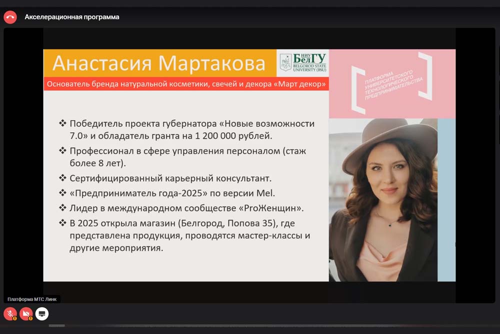 О своём личном опыте запуска проекта и открытия офлайн-магазина рассказала Анастасия Мартакова – предприниматель, основатель российского бренда натуральной косметики, свечей и декора «Март декор», победитель проекта губернатора «Новые возможности 7.0» и обладатель гранта на 1 200 000 рублей.