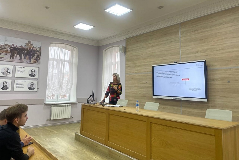 На базе института общественных наук и массовых компетенций НИУ «БелГУ» состоялась открытая лекция к.с.н., доцента кафедры социологии и организации работы с молодёжью, лектора Российского общества «Знание» Ирины Семченко на тему «Патриотизм в контексте жизненных стратегий молодёжи Белгородской области».