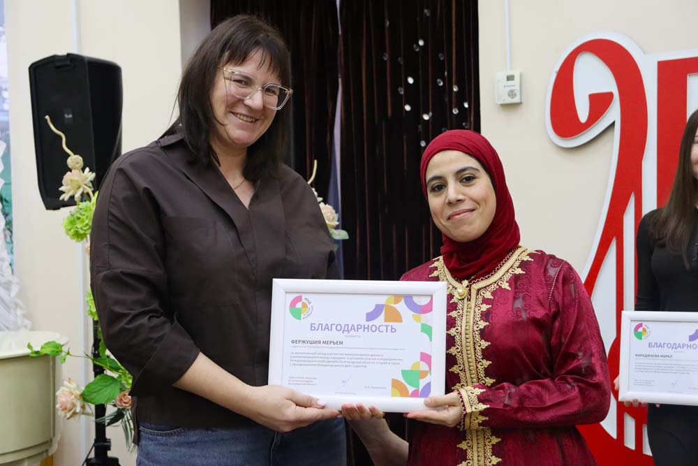 В рамках заседания Комиссии по международному сотрудничеству Совета ректоров вузов Белгородской области на базе Белгородского государственного института искусств и культуры прошла церемония награждения активистов Международного клуба дружбы нашего региона. Благодарностью Заместителя министра по делам молодёжи Белгородской области за активный вклад в развитие межкультурного диалога и активное участие в мероприятиях Международного клуба дружбы наградили студентов института межкультурной коммуникации и международных отношений Лоайзу Солорзано Сильвия Фатиму, Сану Ибрагима Ромуальда, Фараджаеву Марал, студентку медицинского института Абделльатиф Равду Абдалла Эльсабри, студентку института инженерных и цифровых технологий Фержушия Мериям, а также специалиста международного информационного центра департамента международного сотрудничества Арину Шестакову.