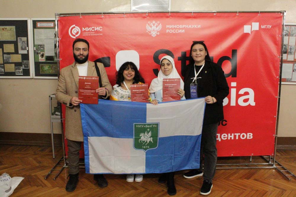Четыре иностранных студента нашего университета приняли участие в окружном этапе Всероссийского конкурса для иностранных обучающихся «СтудRussia» на базе Московского государственного лингвистического университета. Очный этап собрал 140 иностранных обучающихся со всего Центрального федерального округа. НИУ «БелГУ» представляли Лоайза Солорзано Сильвия Фатима из института межкультурной коммуникации и международных отношений, Фержушия Мериям и Маматалиева Заринахон Аррабой кизи из института инженерных и цифровых технологий и студент института наук о Земле Талджеббинни Абдульраззак. Конкурс проходил в шести номинациях. Талджеббинни Абдульраззак из Сирийской Арабской республики занял третье место в номинации «Добро без границ».
