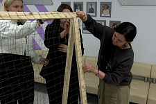 В рамках акции профессор кафедры конституционного и международного права Елена Сафронова, которая с начала специальной военной операции активно занимается волонтёрской деятельностью и помогает воинам, провела мастер-класс по плетению сетей. Его участники познакомились с различными техниками создания маскировочных сетей и внесли свою лепту в помощь фронту.