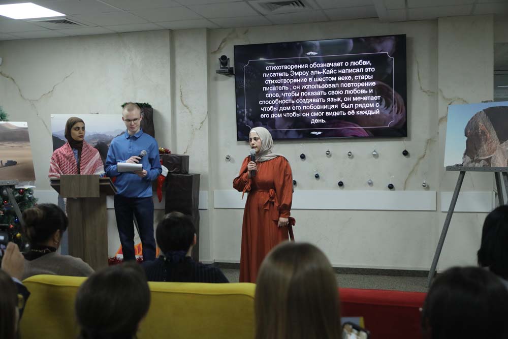 В течение вечера ребята смогли принять участие в познавательной викторине, показали презентации о своих странах и местных особенностях, а также продемонстрировали примеры искусства разных арабских стран.