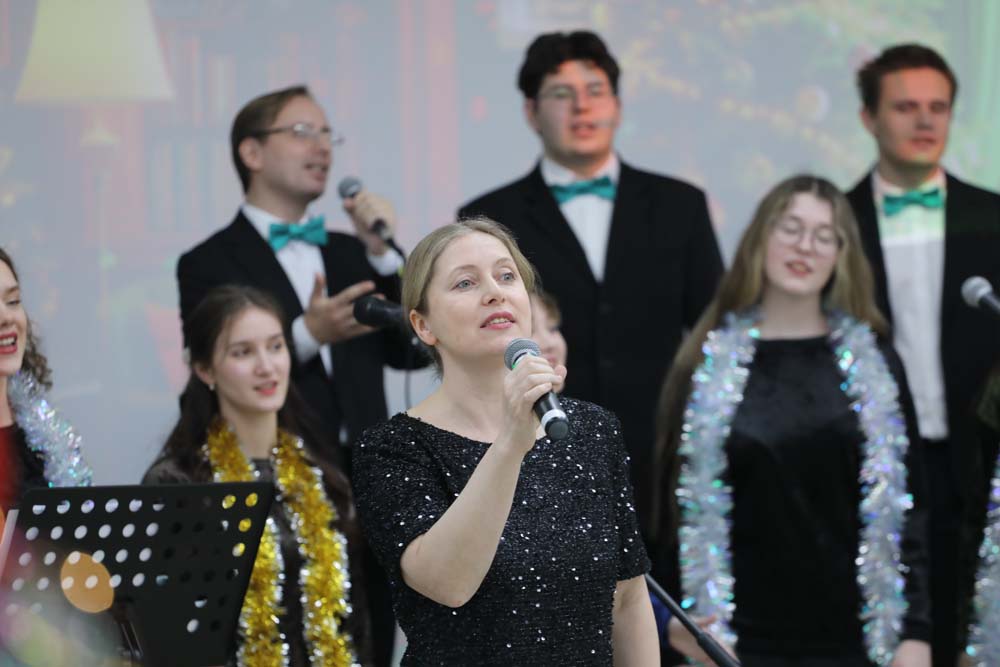 Ведущие вечера предложили гостям окунуться в атмосферу любимых зимних песен и вспомнить самые добрые композиции о зиме, любви и празднике.