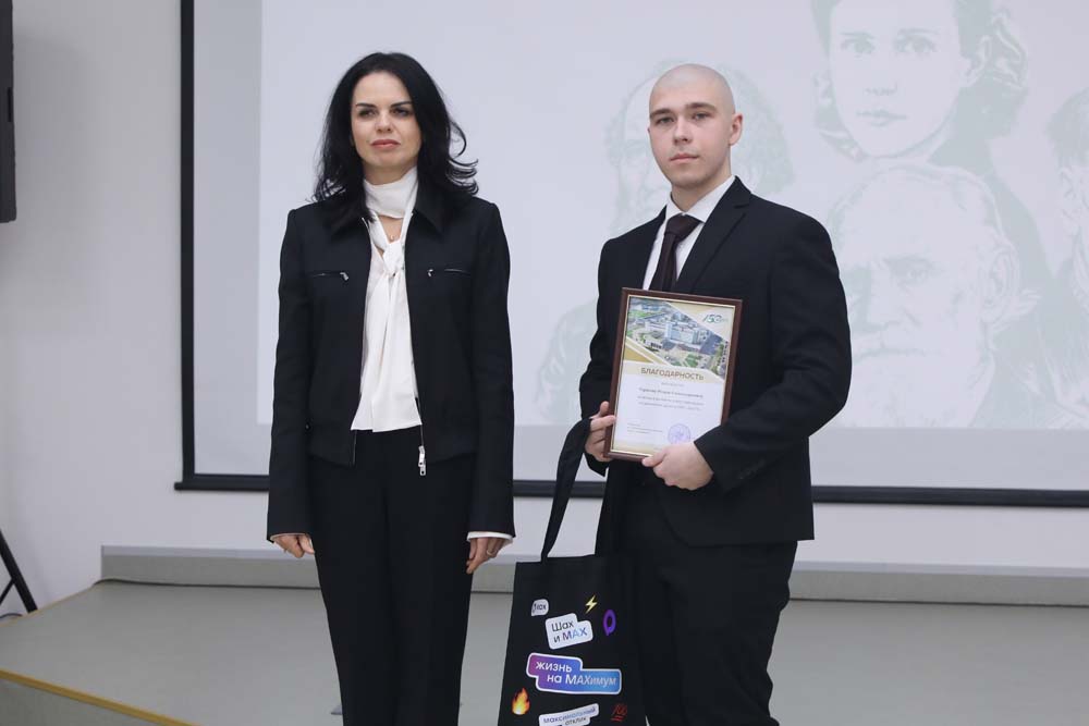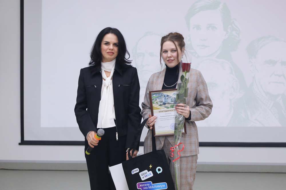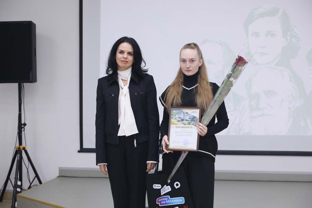 В завершение мероприятия к присутствующим обратилась Елена Скрипникова, которая поблагодарила участников за честную игру и пожелала не останавливаться на достигнутом. Также Елена Владимировна вручила подарки победителям и благодарности студентам за достижения в учёбе и исследовательской деятельности.