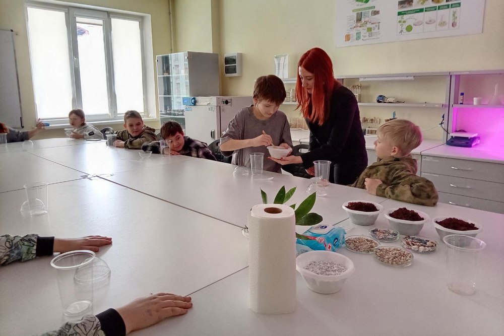 Мастер-класс по изготовлению флорариума провели лаборанты биологического учебно-научного комплекса «Инновационные решения» Софья Ахапкина, Виктория Ефимова, Анастасия Гаркавая. Школьники изучили принципы автотрофной мини-экосистемы: круговорот воды благодаря транспирации и конденсации, роль слоистой структуры для аэрации и фильтрации, а также научились подбирать растения на основе экологии вида для устойчивого симбиоза. На практике, используя предоставленные инструменты и материалы, гости создали уникальную композицию из растений, камней и декора, освоили основы ухода и забрали готовый флорариум на память.
