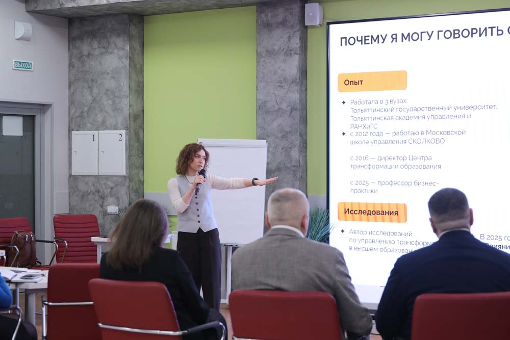 Диагностическая сессия по проекту «Профессиональные школы НИУ «БелГУ» с участием внешнего эксперта – директора Центра трансформации образования Школы управления «Сколково» Ольги Назайкинской, представителей профессиональных школ и курирующих их деятельность проректоров открыла череду стратсессий в университете в 2026 году. При постановке задачи ректор Евгения Карловская отметила значимость диагностической сессии для эффективной трансформации университета.