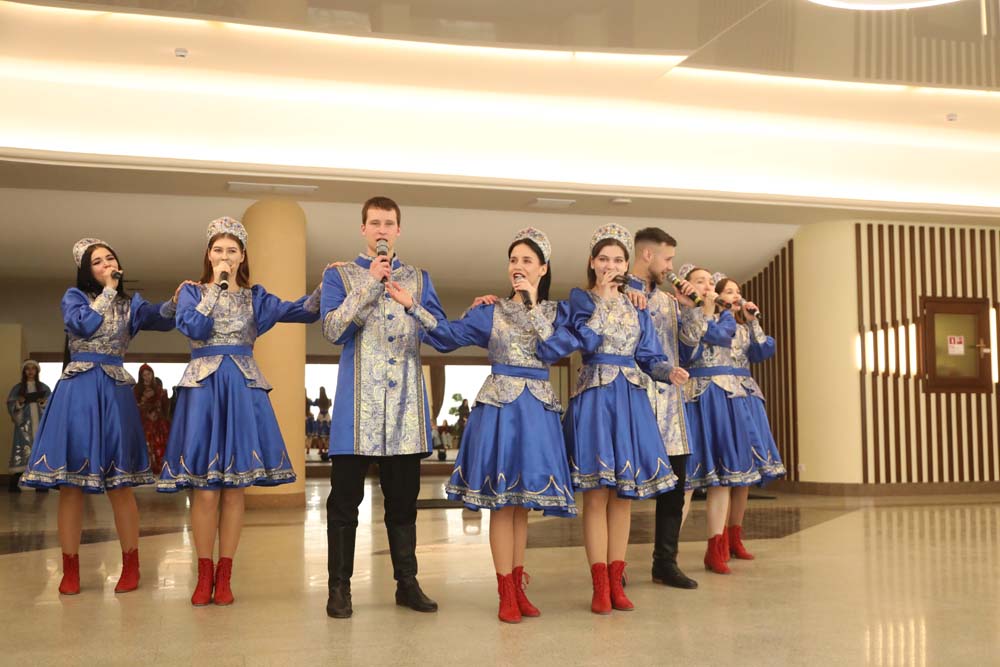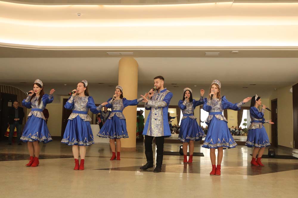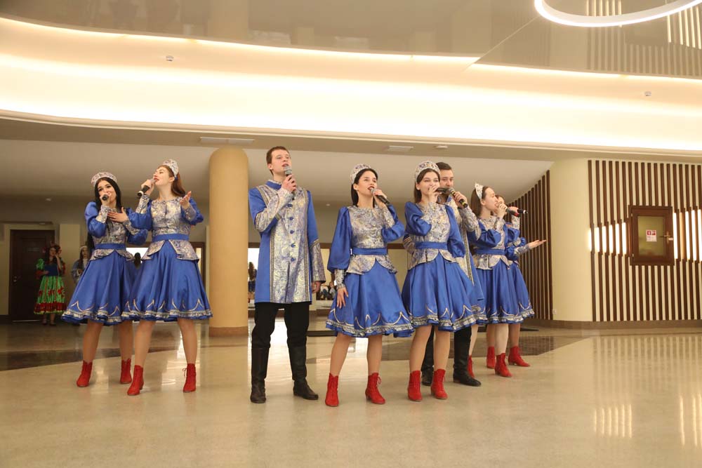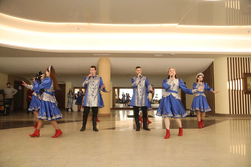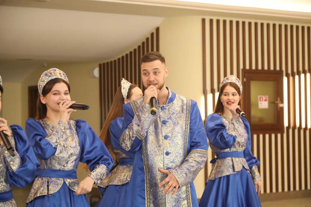В исполнении ансамбля народной песни «Отрада» прозвучали песни «Любить по-русски», «Барыня» и «Ярмарка». Развлекали гостей и разнообразными активностями: участники смогли проверить свои силы в перетягивании каната, поедании блинов на скорость, поиграли в танцевальный круг и поводили хоровод.