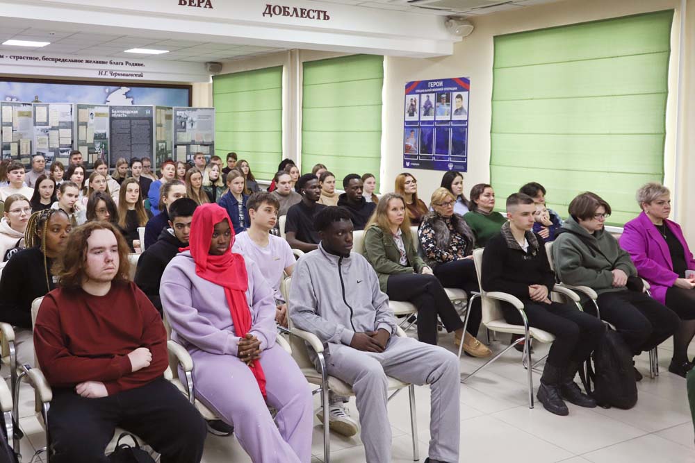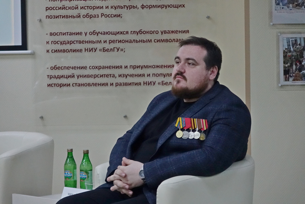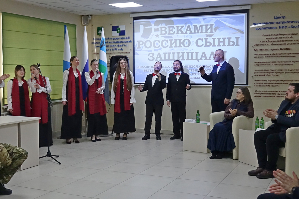 Встреча «Веками Россию сыны защищали» прошла в Центре гражданско-патриотического воспитания обучающихся НИУ «БелГУ». Мероприятие организовано департаментом молодёжной политики и воспитательной деятельности и Научной библиотекой имени Н.Н. Страхова совместно с Центром гражданско-патриотического воспитания, Профсоюзным комитетом НИУ «БелГУ» и Координационным центром ВПИТИПЭ.