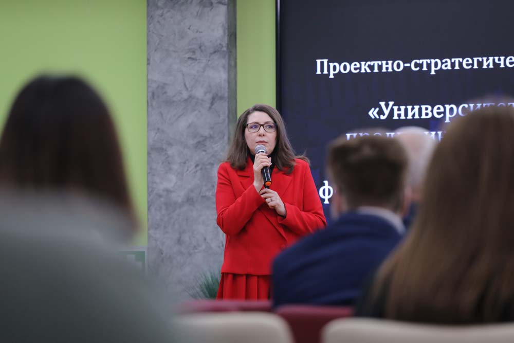 В Белгородском госуниверситете прошла проектно-стратегическая сессия сессии «Университетское предпринимательское сообщество: пути формирования и развития». В роли ведущей выступила руководитель Естественнонаучной профессиональной школы НИУ «БелГУ» Ульяна Круть. Модерировала мероприятие команда департамента развития персонала под руководством его директора Дмитрия Сазонова.
