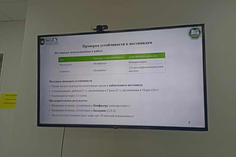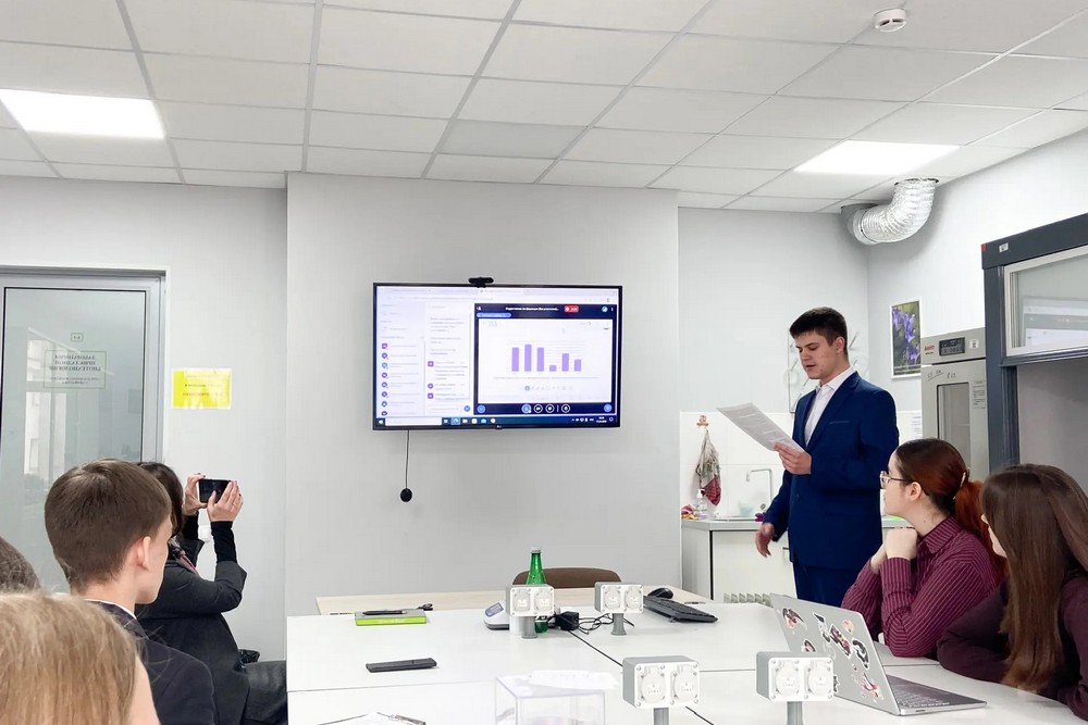 Конференция на кафедре микробиологии и биотехнологии прошла в смешанном формате. Начала мероприятие старший преподаватель кафедры Виолетта Клюева, выступив с докладом о некоторых промежуточных итогах одного из направлений работы кафедры – проекта по микробиологическому синтезу липидов. В основной части были заслушаны доклады с результатами научных исследовательских работ магистрантов и бакалавров. В конце конференции свою работу всем присутствующим представил приглашённый участник – обучающийся 9 класса Ярослав Зонов, который стал победителем секции биотехнологии на Всероссийской конференции школьников «Юность науки -2026».